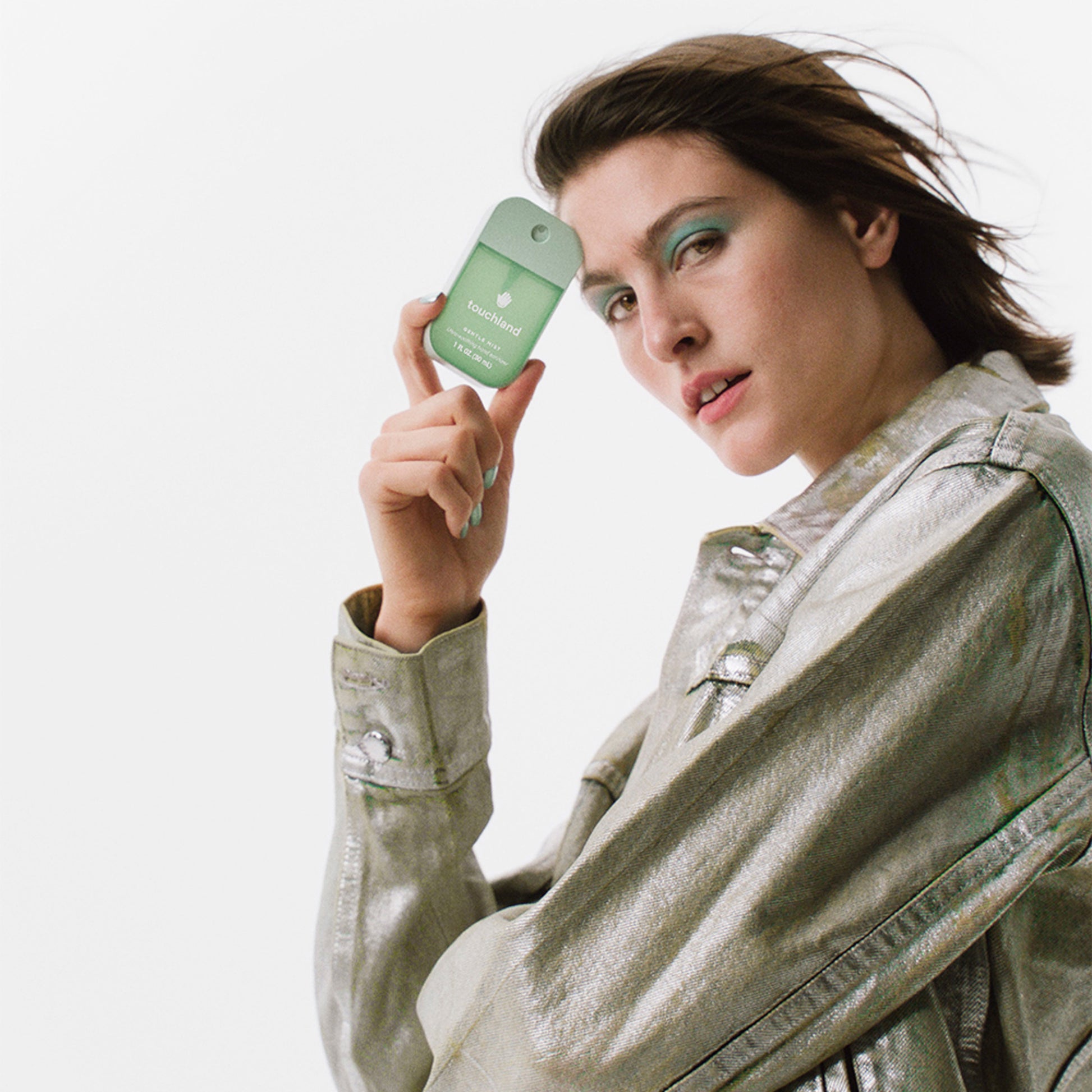 — Spray enough product into your palms to thoroughly cover your hands.