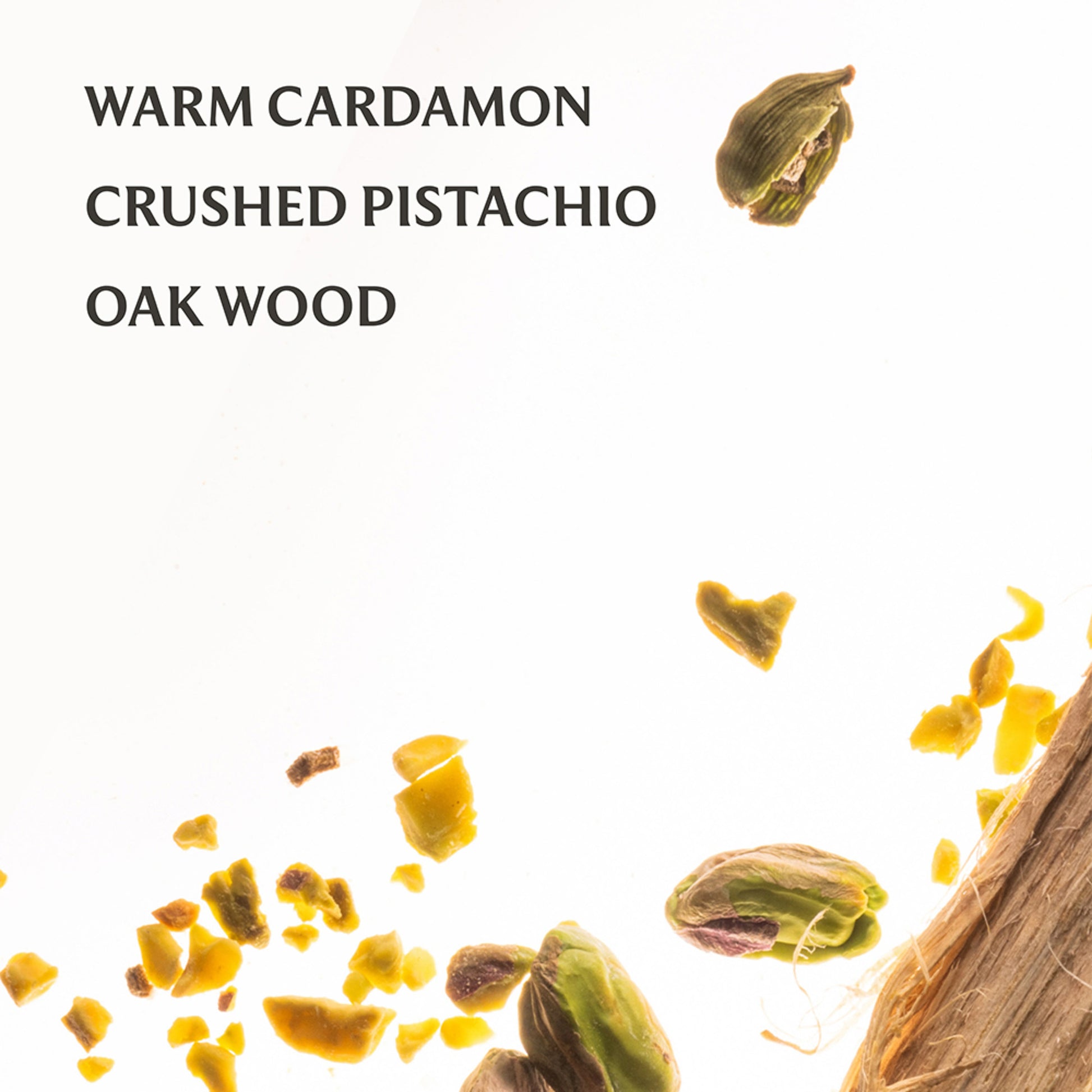 – Features a comforting blend of pistachio, marshmallow, and warm oak wood