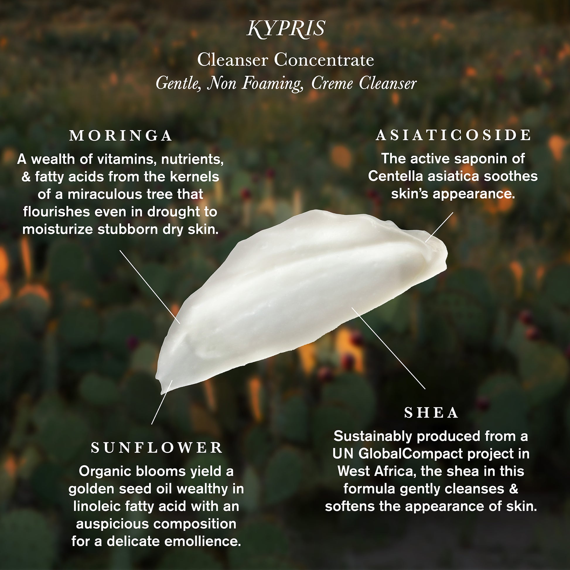 This opulent, non-foaming cleanser gently dissolves buildup, SPF, light makeup, and evening actives without stripping the skin. Featuring co-op grown moringa, wildcrafted prickly pear, and fermented ocean extracts, it leaves your complexion soft, hydrated, and glowing.