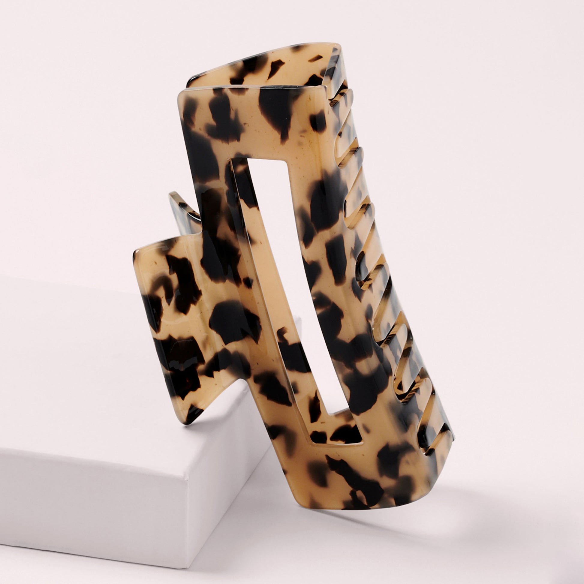 This epically large rectangle claw clip is designed to hold all your hair up comfortably and securely all day long. Its oversized, elegant rectangle shape combines style and function, while the chic tortoise finish complements virtually any outfit.
