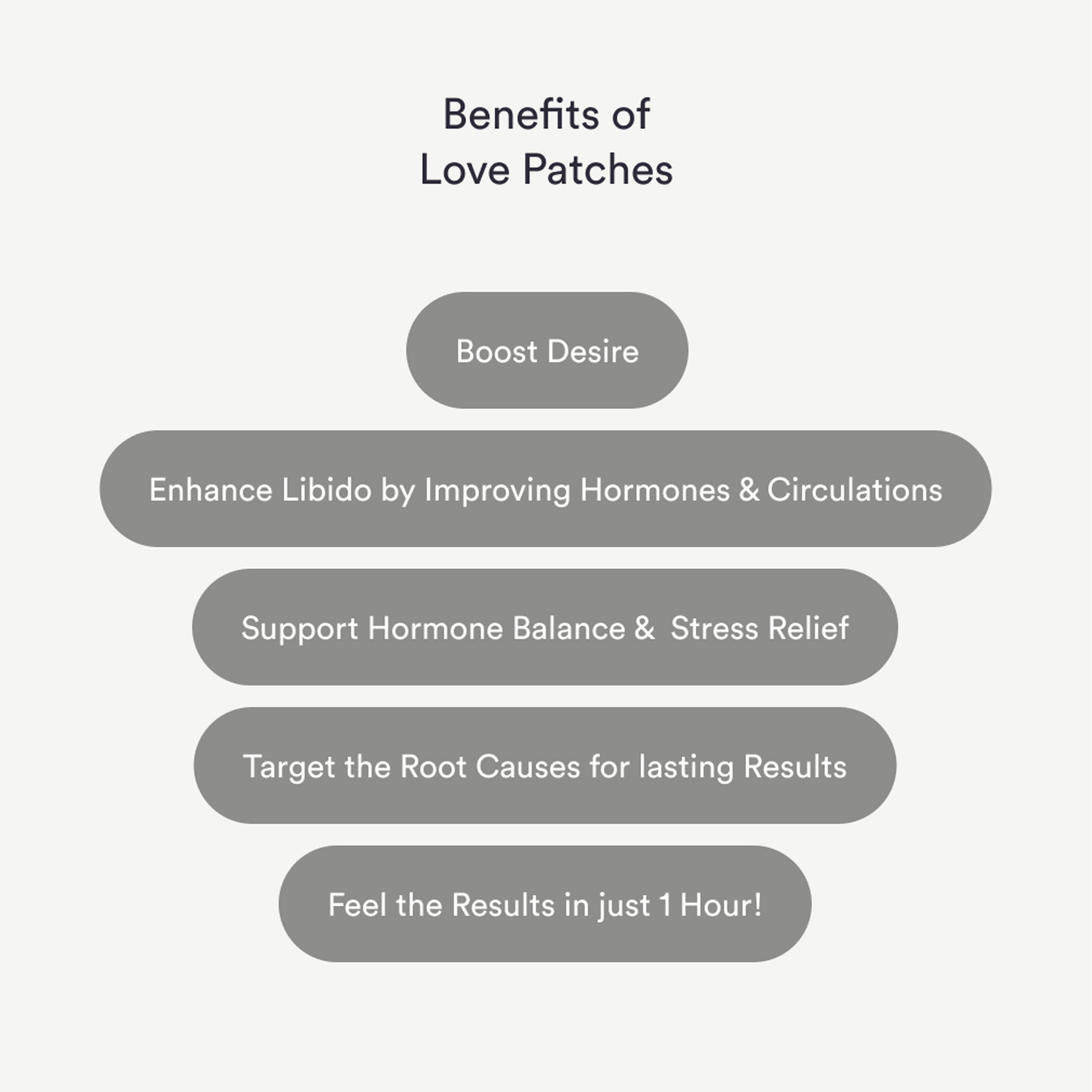 The Love Patches are crafted to naturally support libido and enhance sexual wellness with a carefully selected blend of plant-based ingredients. This discreet and convenient patch helps promote balance and vitality to support your intimate well-being.